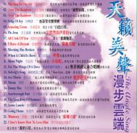 01. Walking In The Air 漫步在空中 02. Over The Rainbow 彩虹彼端 03. Over The Rainbow 彩虹彼端 04. Song Of Joy 快樂頌 05. Amazing Grace 奇異恩典 06. Pie Jesu 求主垂憐 07. All I Ask Of You 我對你的唯一要求 08. I Have A Dream 我有個夢 09. Morning Has Broken 破曉時分 10. When A Child Is Born 當巨星誕生 11. Silent Night 平安夜 12. For The Wings Of A Dove 乘著歌聲的翅膀上 13. Solveig's Song 蘇爾維琪之歌 14. Ave Maria 聖母頌 15. Mama 媽媽 16. Danny Boy 丹尼男孩 17. Scarborough Fair 史卡博羅市集 18. The Last Rose Of Summer 夏日最後的玫瑰 19. Annie Laurie 安妮蘿莉 20. Going Home 秋夜吟 21. Memory 回憶 22. I Don’t Know How To Love Him 我不知道如何愛你 CD Π 01. Cry Me A River(一) 淚流成河 02. Cry Me A River (二) 淚流成河 03. The End Of The World世界末日 04. My Last Date我跟你的最後一次約會 05. I Can’t Help You I’m Falling Too 我無法幫助你,我也墜入愛河了 06. I Will follow Him (Chariot) 我願跟隨他 07. What A Wonderful World多麼美好的世界 08. Heal The World 治癒這個世界 09. Stand By Your Man 依偎在你身旁的男人 10. D.I.V.O.R.C.E 離婚 11. Edelweiss from The Sound Of Music 一朵小白花 12. Silver Thread Among The Gold 白髮吟 13. Orinoco Flow(Sail Away)(Enya)俄里諾柯河 14. How Can I keep From Singing(Trade)我如何信守承諾 15. San Damiano 聖達米安諾 16. Evening Falls(Enya) 夜幕低垂 17. Sailing 航行 18. One Voice 一個聲音 19. Close Every Door TO Me 關上每一扇門 20. Light The Candles Round The World 點燃舉世的燭光 21. White Christmas 銀色聖誕 22. O Holy Night 聖誕夜 |